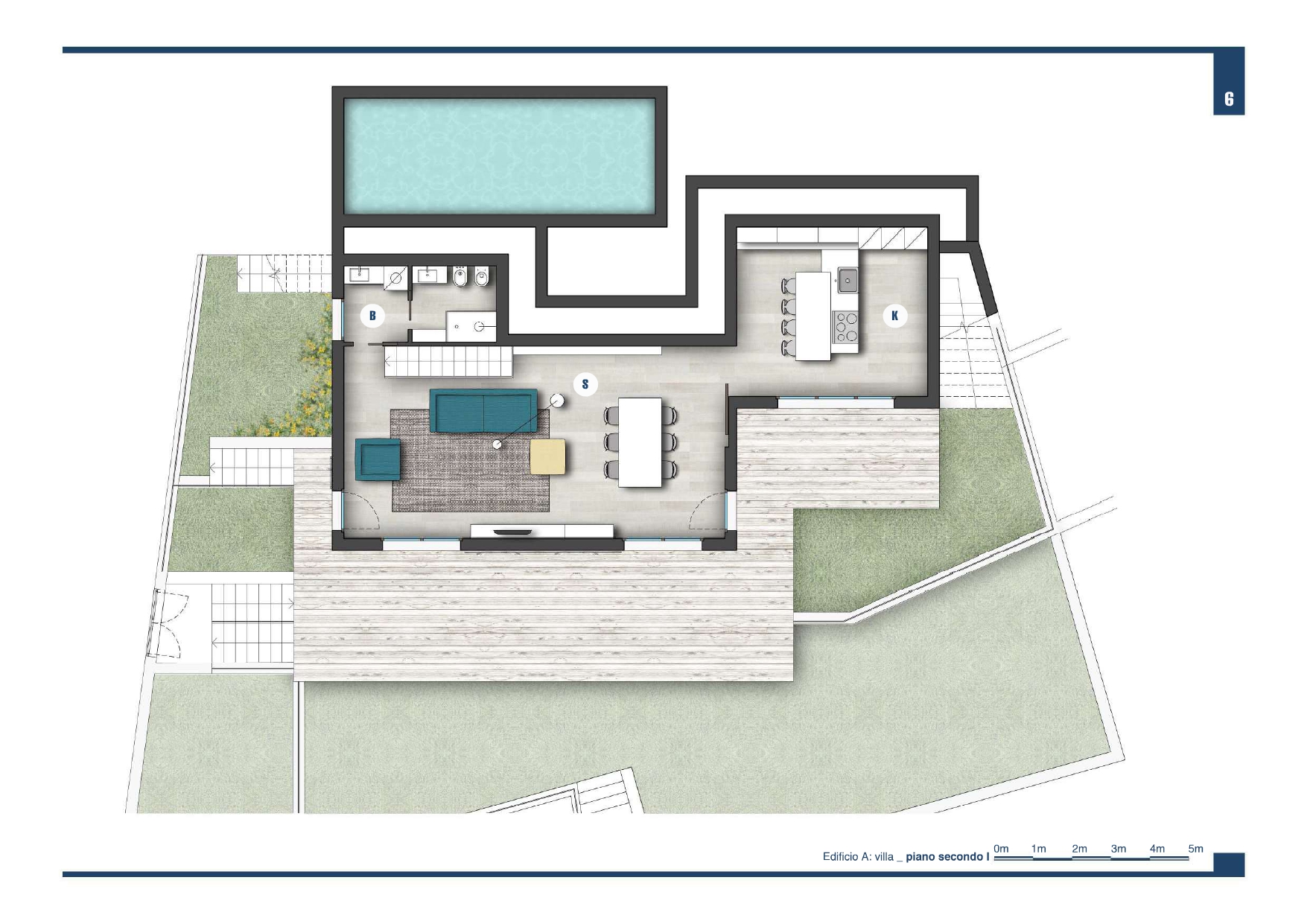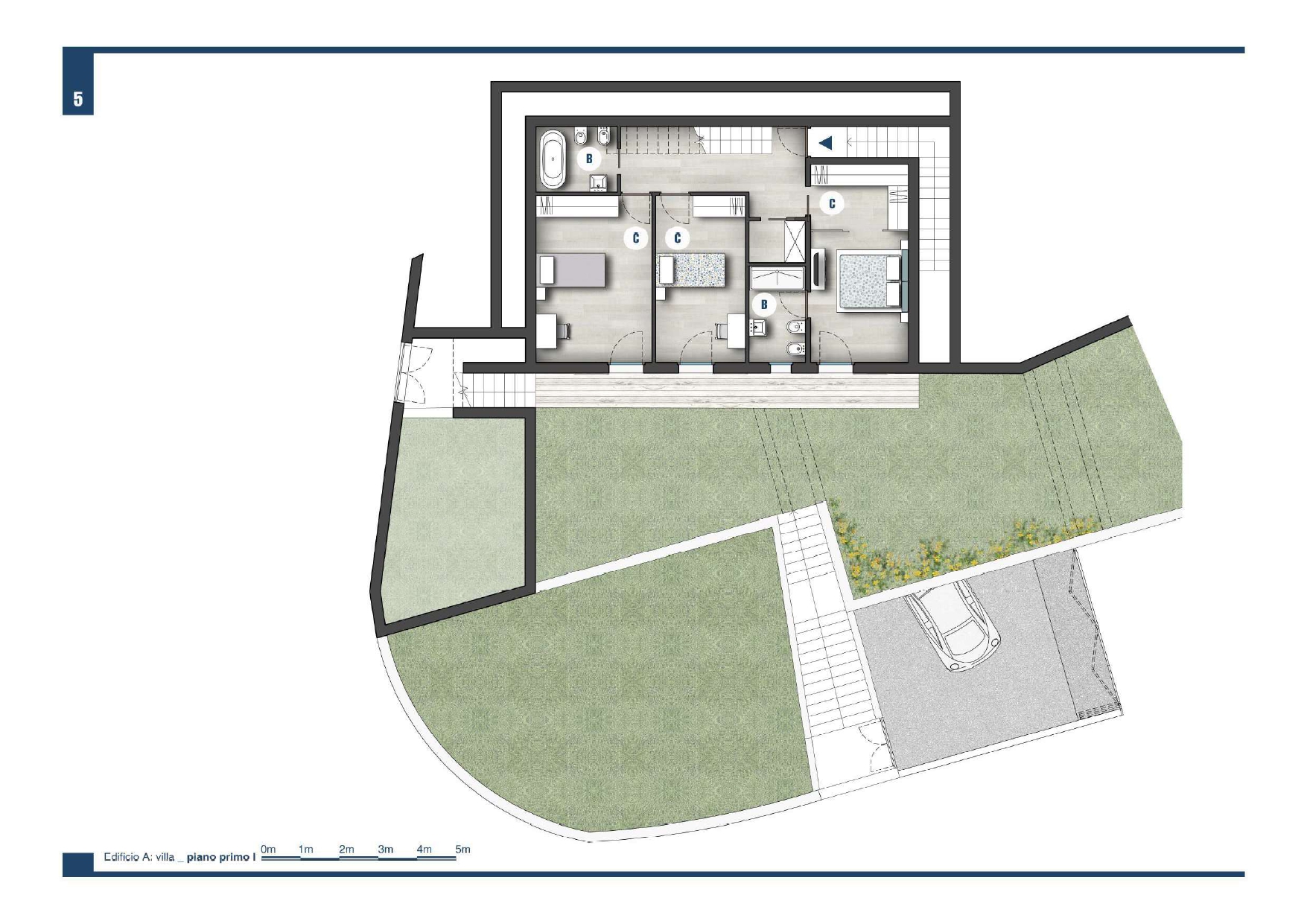 2° liv. tre camere da letto con doppi servizi.